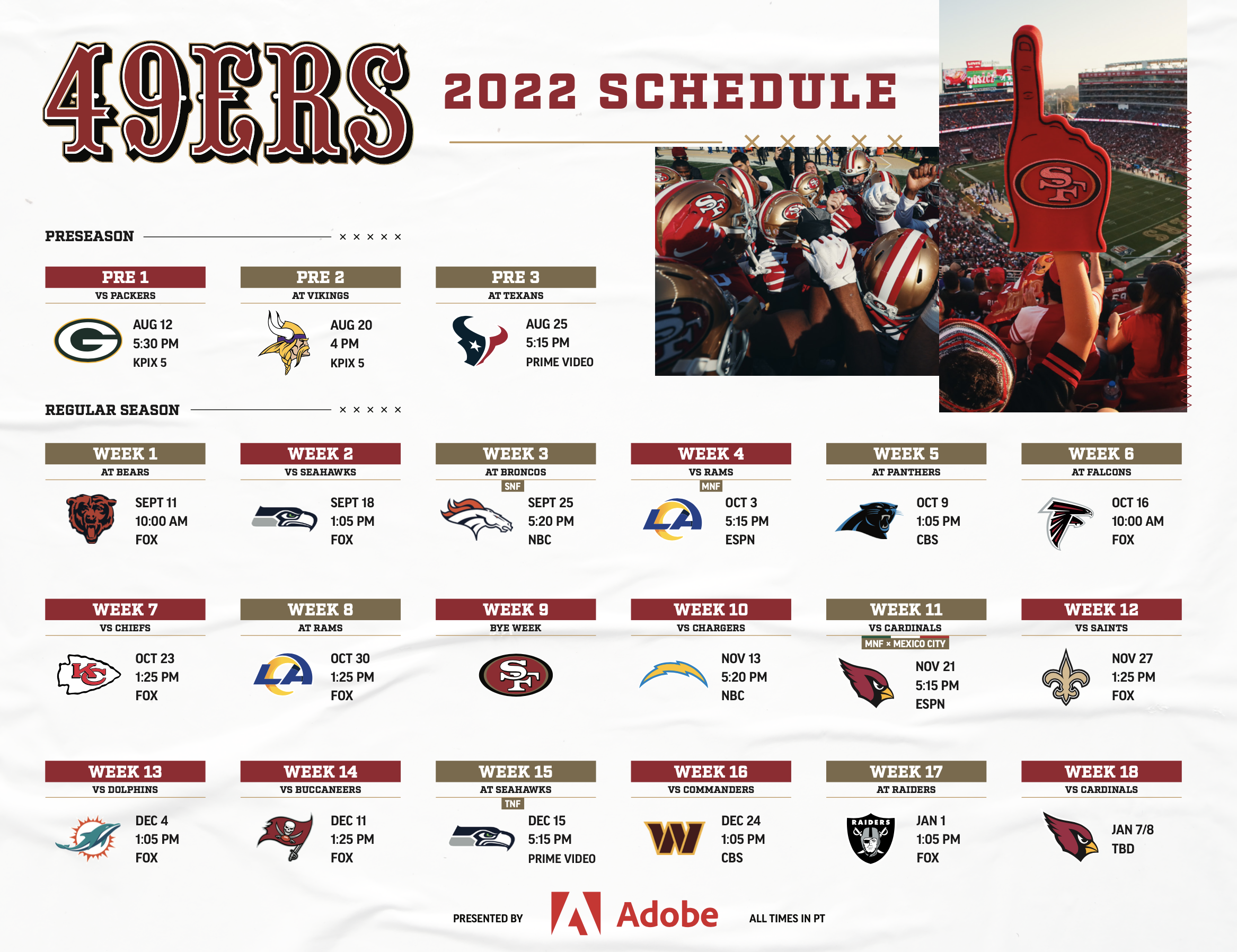 49ers Schedule San Francisco 49ers 49ers Com